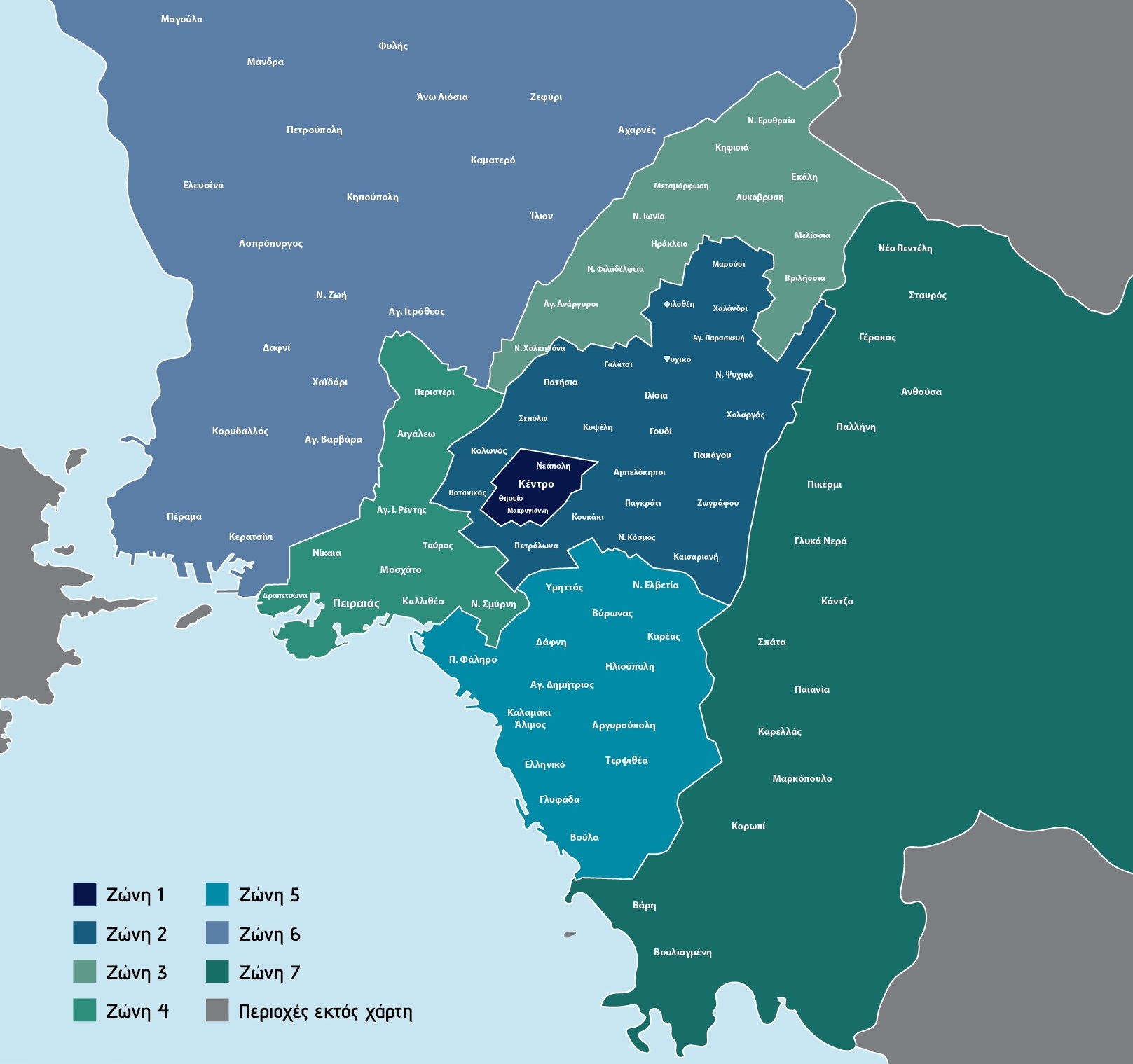 Map of areas / charging zones of Attica